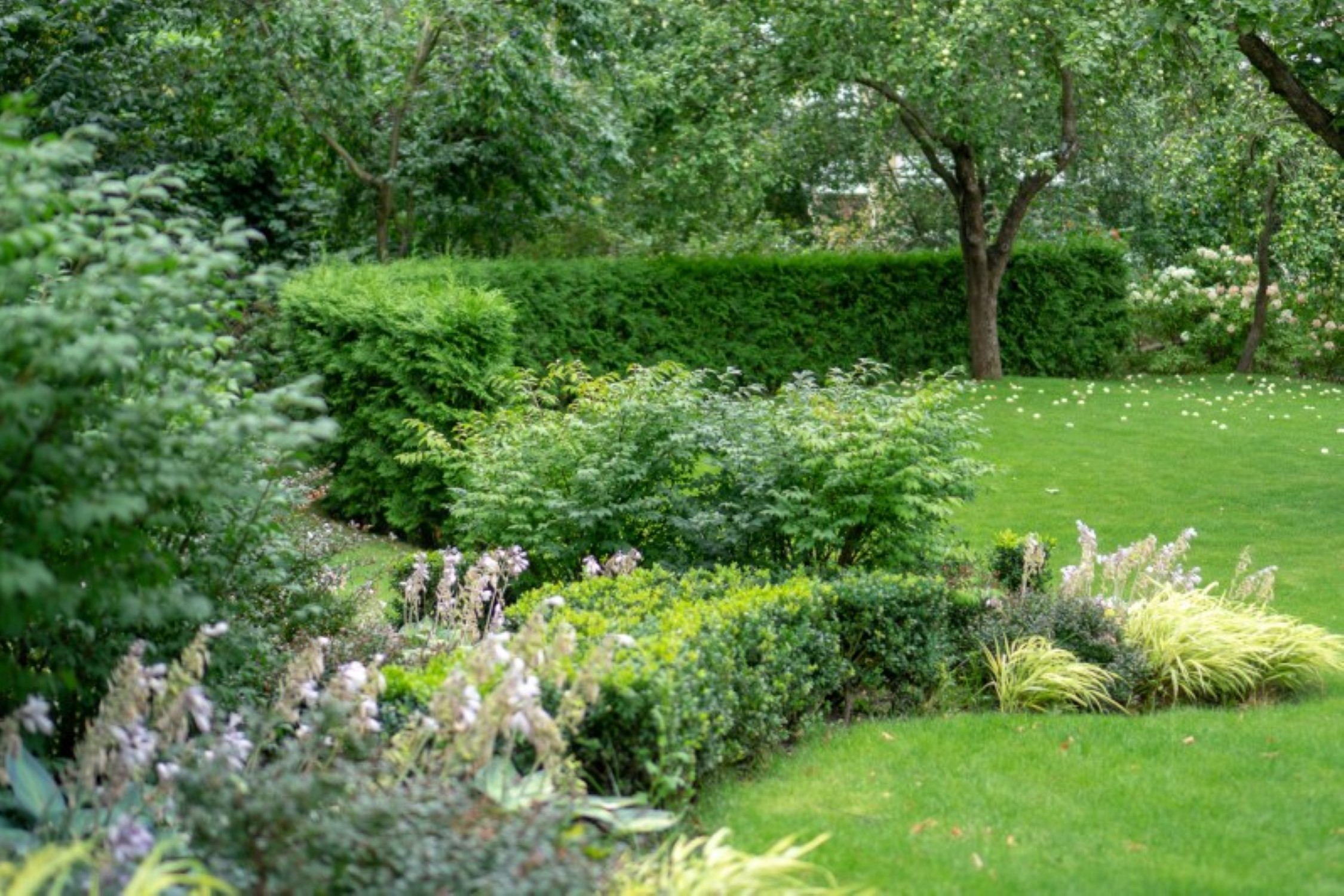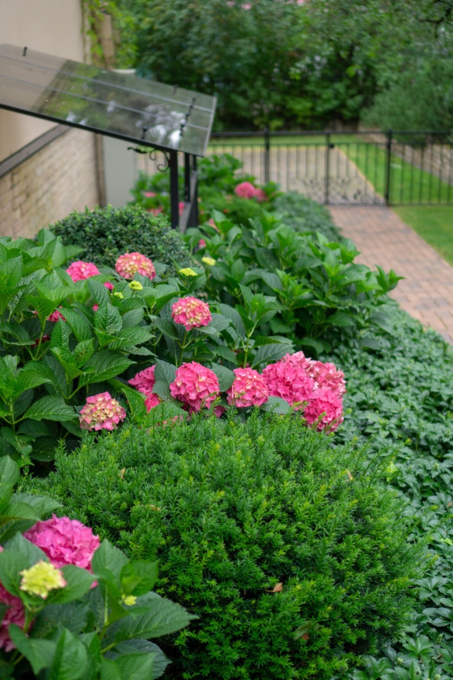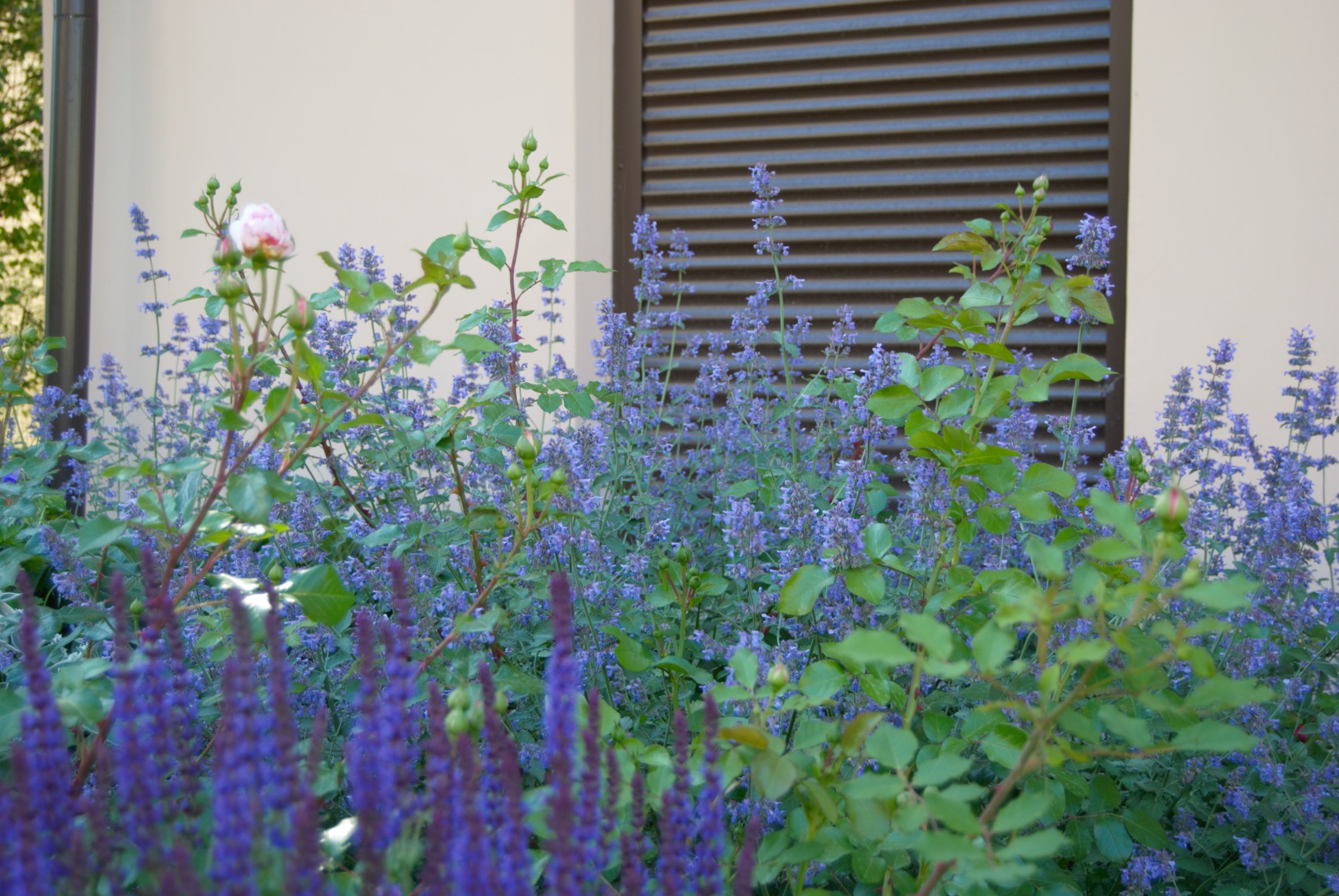 Svarbiausias šio projekto principas – pusiausvyra tarp želdinių ir architektūros. Augalų formos ir spalviniai sprendimai parinkti taip, kad jie papildytų fasado linijas ir pastato detales, o ne konkuruotų su jomis. Vijokliniai augalai, apgaubiantys fasadą, suteikia jam minkštumo, o struktūriškai suformuoti želdynai kuria elegantišką ir reprezentatyvų vaizdą.