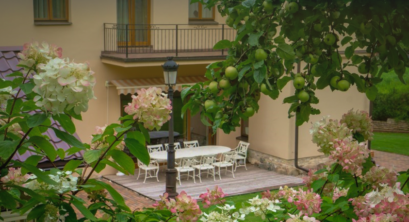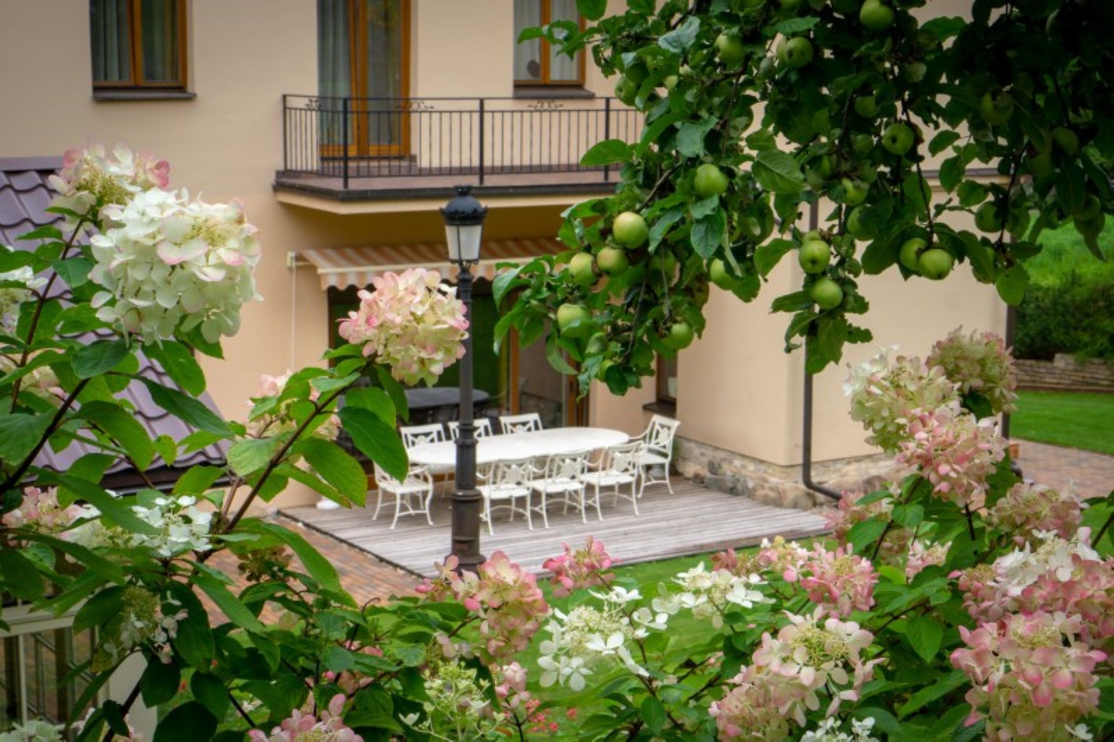 Siekiant išlaikyti autentišką istorinę dvasią, aplinkai buvo parinkti augalai ir medžiagos, atitinkančios klasikinio miesto namo stilistiką: